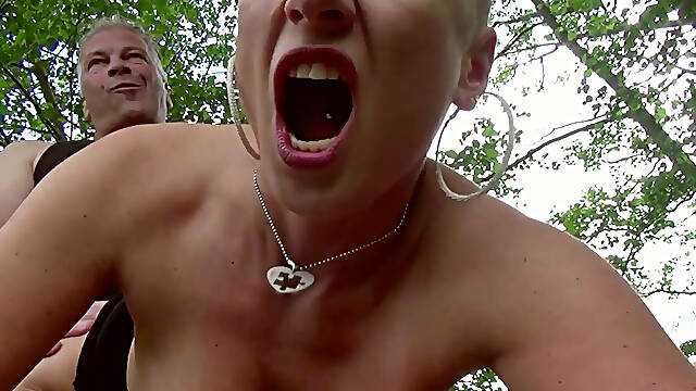 Horny pierced mature gets pussy fucked outdoor
