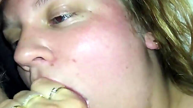 Pretty blonde Samantha Snow gets her hairy muff licked, fingered and fucked