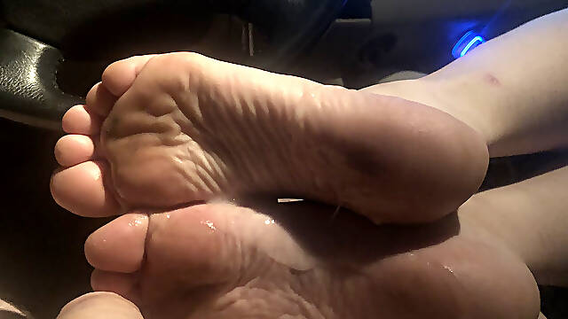 Stepmom wears high high-heeled shoes and teases her stepson in the car on the way to work in the morning