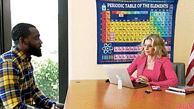 Ebony MILF Teacher Has Rough Interracial Sex With Her Young Nerdy Student Until She Ends Up With