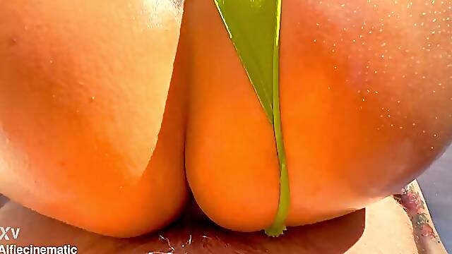 MMV Big-boobed mature oils her melons and fucks outdoors - Blowjob